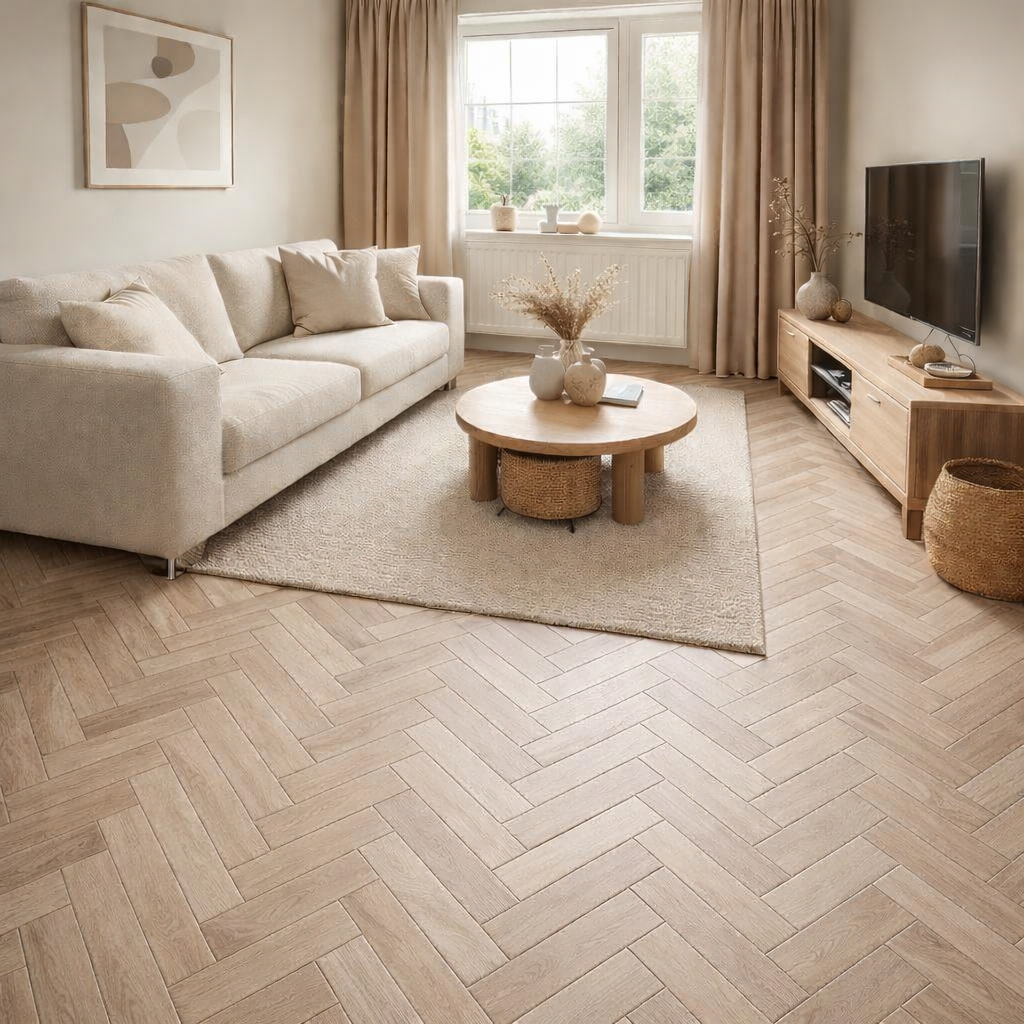 Partijdeal keramisch parket visgraat naturel